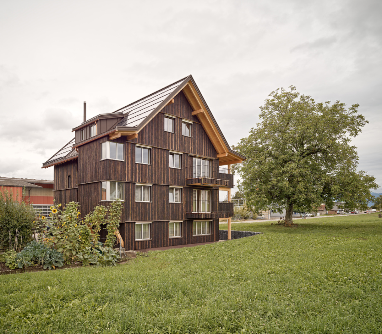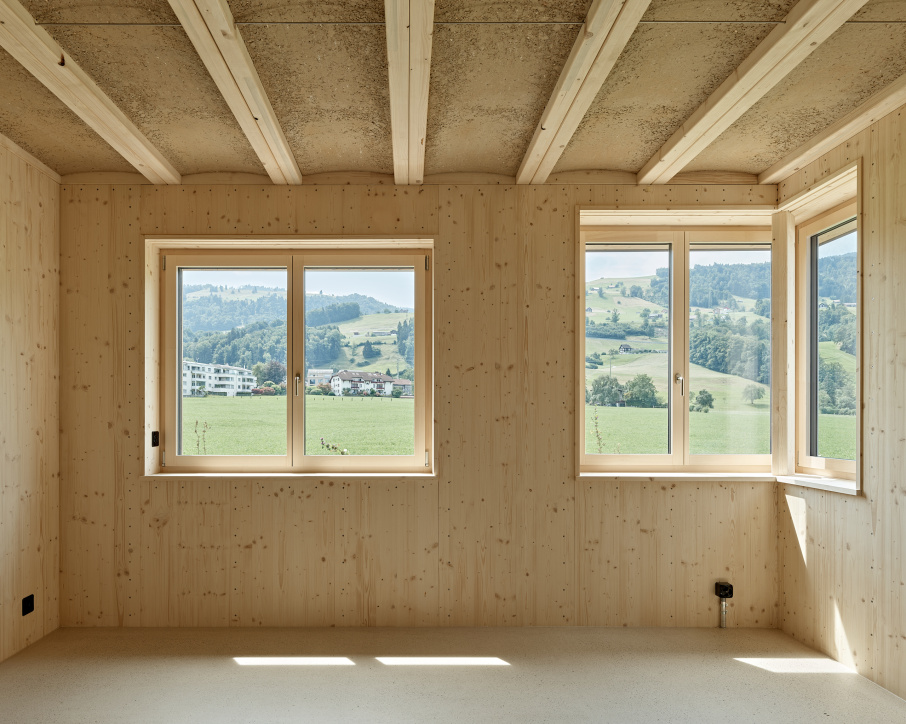 Typ: Studienauftrag Ort: Altendorf SZ Nutzung: Wohn- und Geschäftshaus Holzbauingenieure: IHT Ingenieurholzbau Bauingenieure: Meichtry & Widmer Holz-Lehm-Decken: Rematter Lehmsteine: Terrabloc Fotografie: Roland Bernath Auftraggeberin: Privat Studienauftrag: 2022 Ausführung: 2023 - 2024